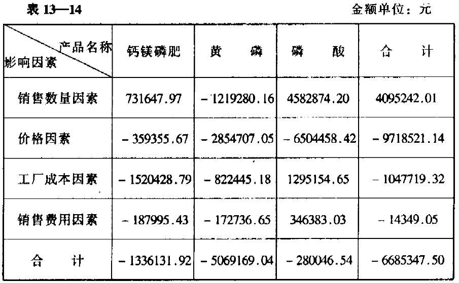 280046.54(元)三種產品按影響因素綜合整理如表13-14: