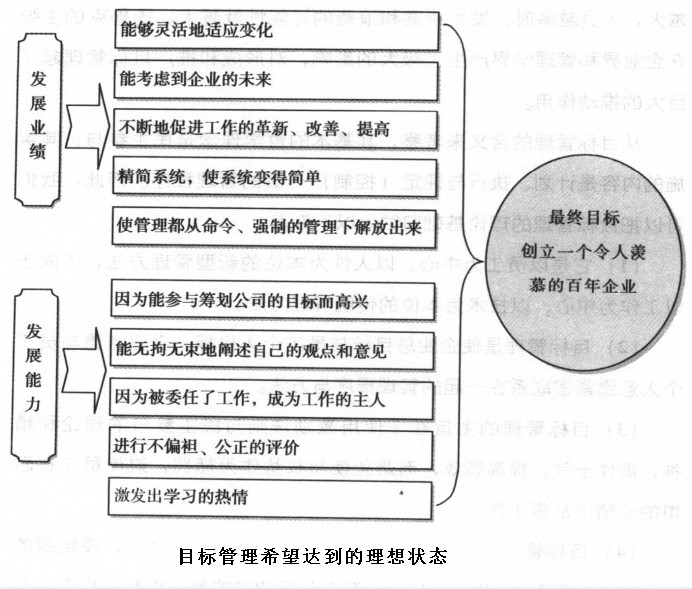 該是目標管理希望達到的理想狀態。需要指出的是,目標管理達到理想狀態的前提還應包括公司必須簿重每一個人,讓他們在自由的氣氛中最大限度地發揮自己的能力,實現自己的人生價值。