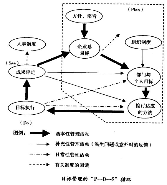 成果評價(see),分析實施后的績效。之后再將績效分析檢討修正,進行重新規劃,由此進入第二次“PDS”循環。目標管理同樣受此“PD-S”循環的支配。
