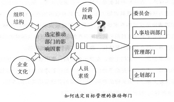 由于企業的組織結構、人員素質、經營戰略、企業文化等的不同可根據企業的實際需要和自身條件,彈性決定由委員會、管理部門人事培訓部門、企劃部門等擔任起推動目標管理制度的工作。